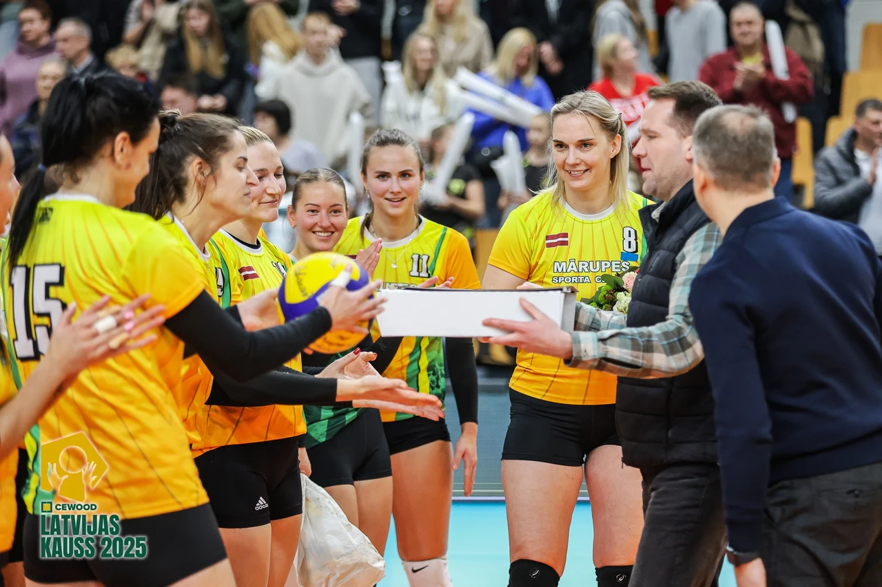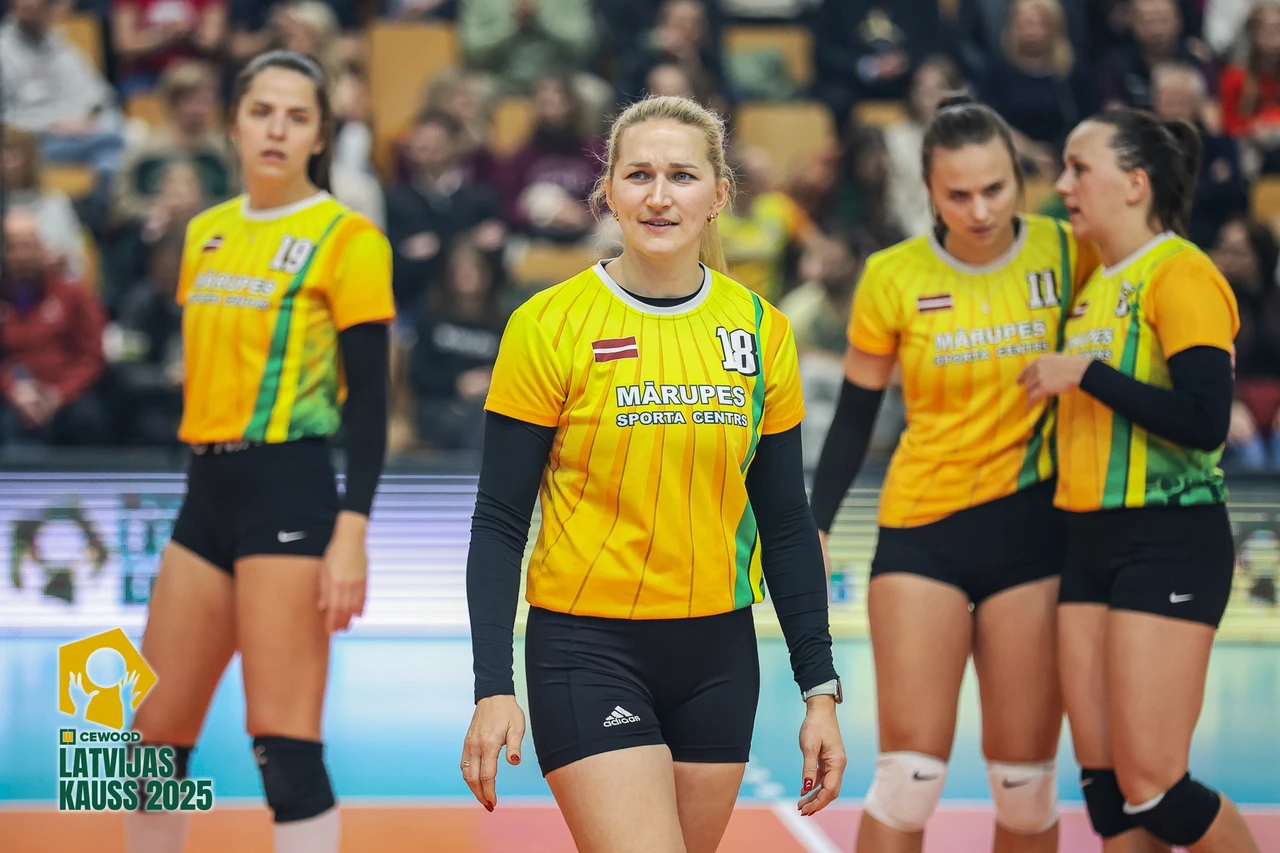Šodien “Rimi” Olimpiskajā centrā par CEWOOD Latvijas kausa ieguvējām kļuva RSU komandas volejbolistes, kuras ar 3-1 (25:19, 18:25, 25:19, 25:15) pieveica “Mārupes SC” vienību.Latvijas kausa glabātājai RSU spēli sāka Agija Ankevica, Anna Cepurīte, Monta Urbāne, Loreta Martinsone, Emīlija Tralmaka, Elvita Dolotova un “libero” Kristīne Kramēna un Megija Grundmane, bet “Mārupes SC” laukumā sūtīja Sandu Visočansku, Lieni Šimkusi, Darju Boliņu, Amandu Reguti, Rūtu Treiju, Elzu Kjaksti un “libero” Alisi Kociņu un Jevgeniju Gudovsku.